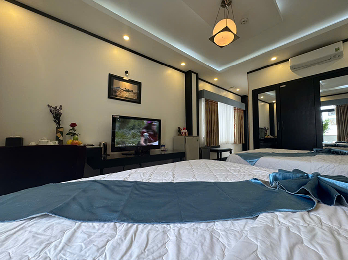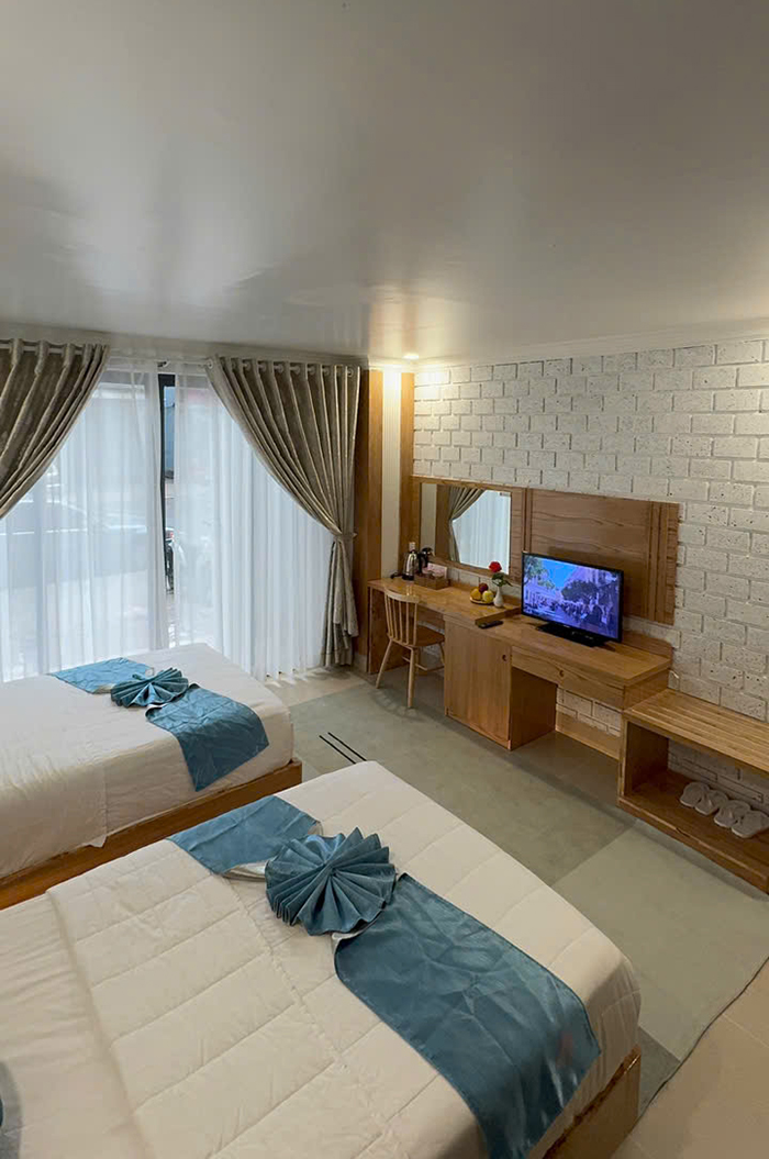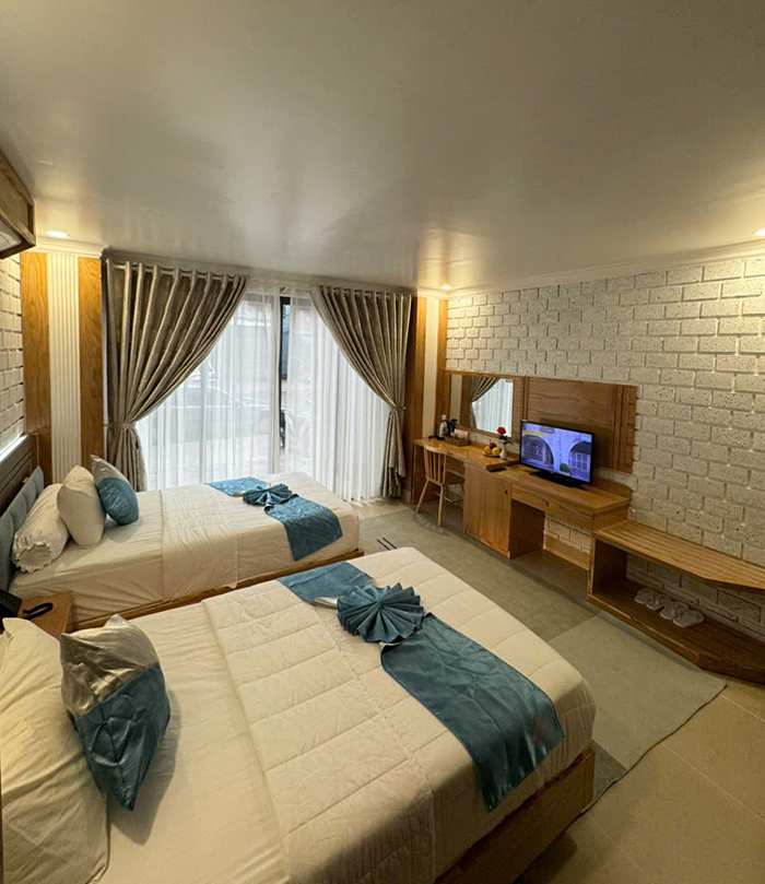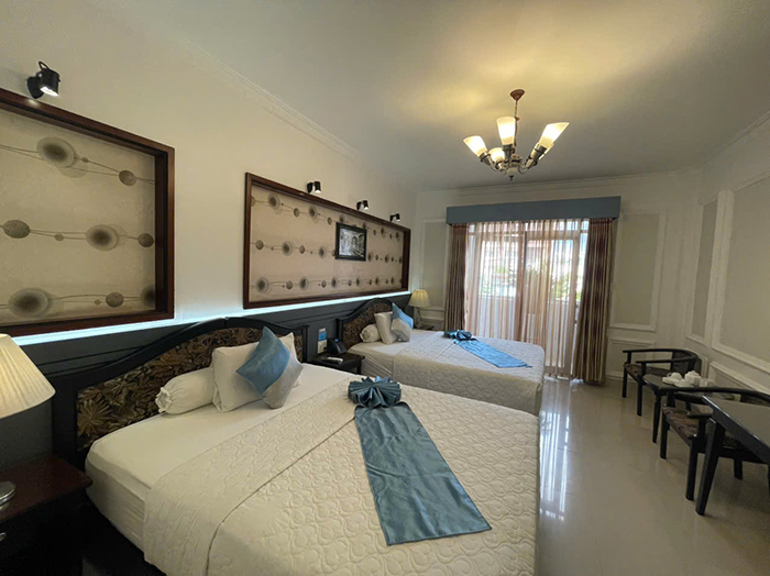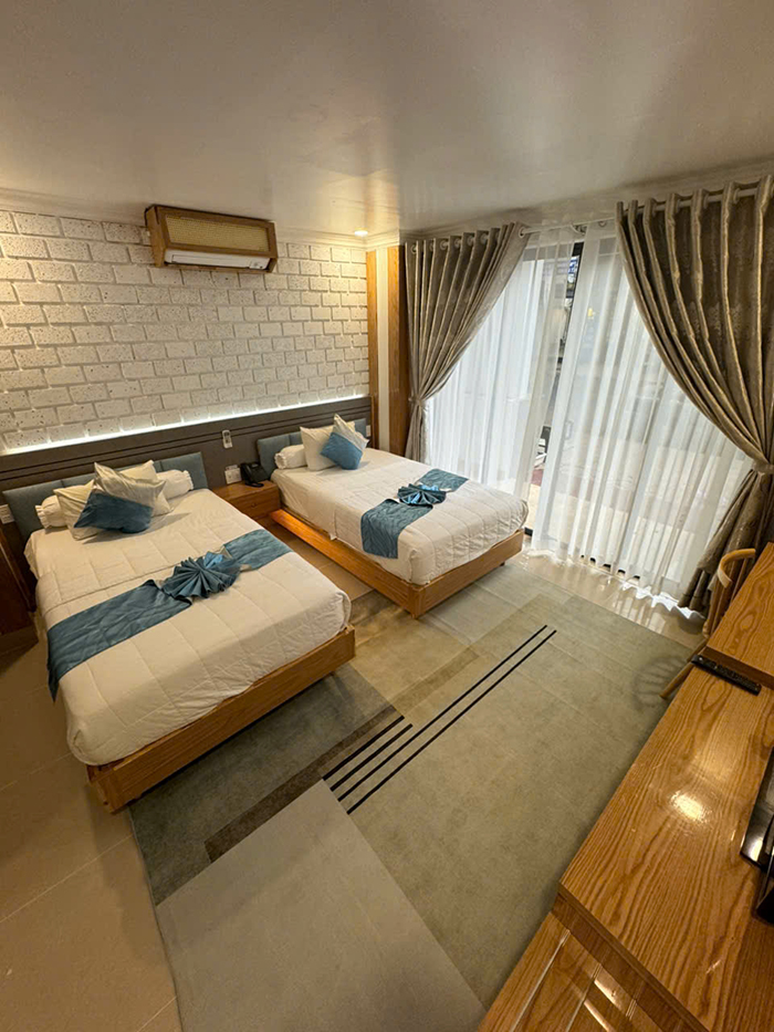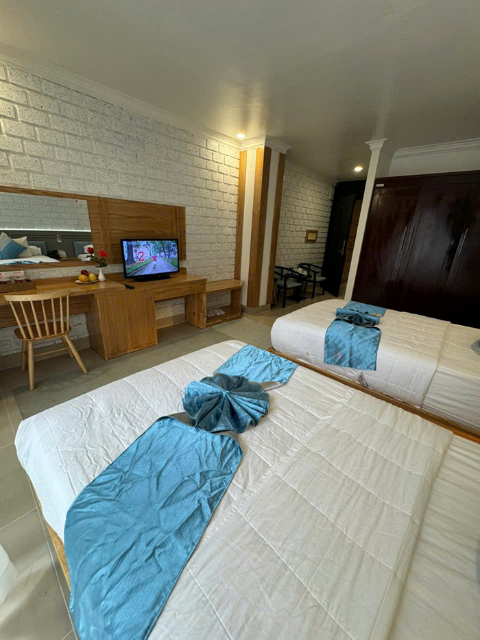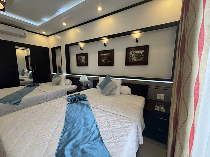 Bố trí khoa học, hệ thống đèn, ánh sáng thích hợp cho nghỉ ngơi thư giãn với 2 giường đơn. phòng rộng khô thoáng với đầy đủ tiện nghi thiết bị hiện đại.