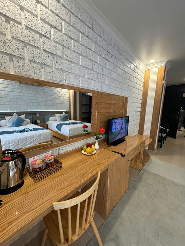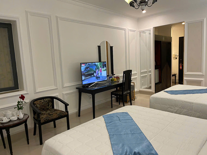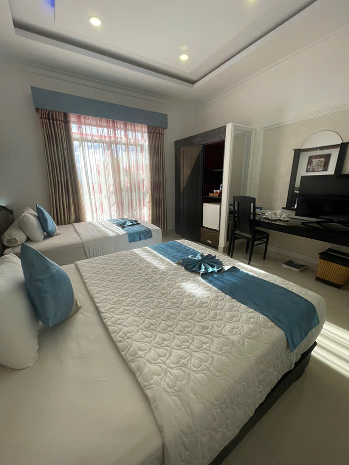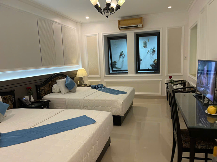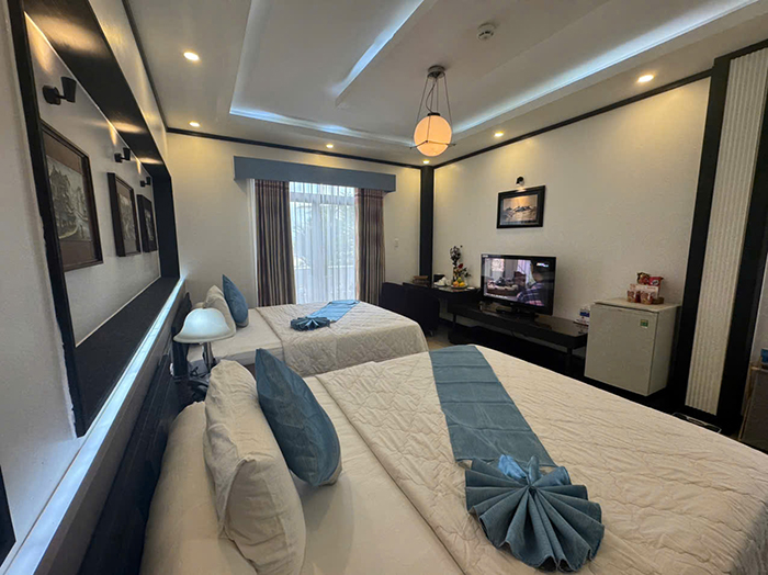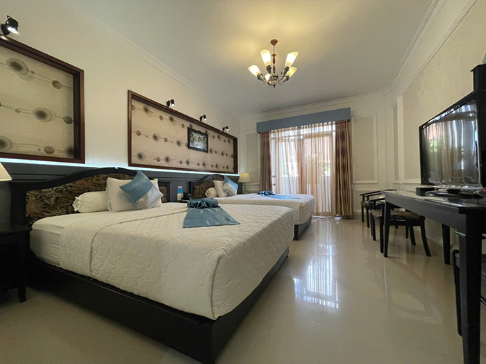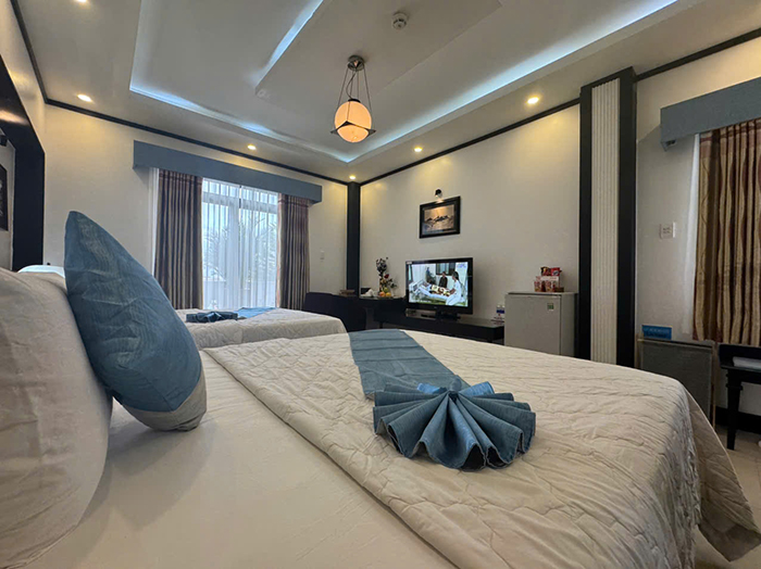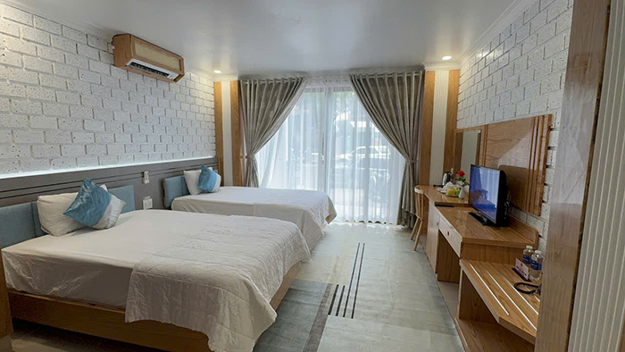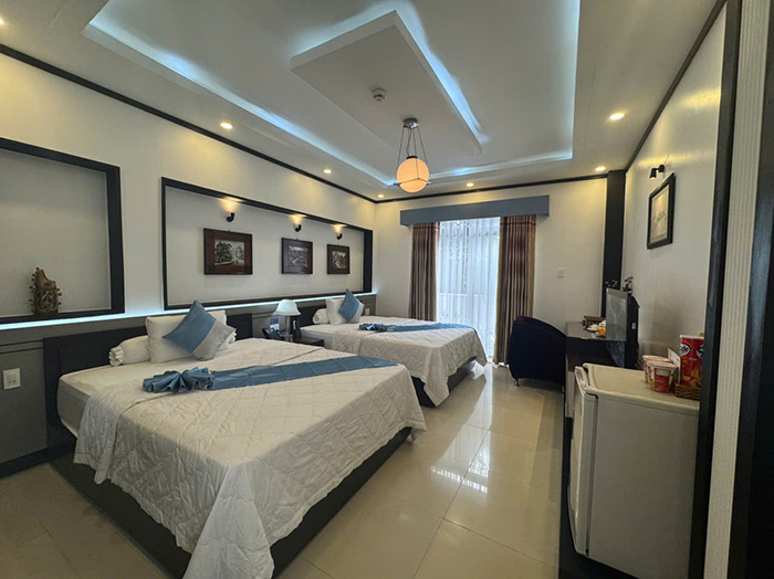 Bố trí khoa học, hệ thống đèn, ánh sáng thích hợp cho nghỉ ngơi thư giãn với 2 giường đơn. phòng rộng khô thoáng với đầy đủ tiện nghi thiết bị hiện đại.