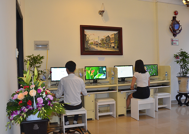 Phòng internet được đầu tư đồng bộ các thiết bị cũng như tốc độ đường truyền cao, nhằm tạo mọi điều kiện cho Khách hàng thư giãn và làm việc tốt nhất khi lưu trú và sử dụng dịch vụ.