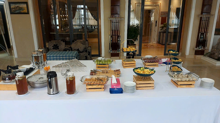 Không gian rộng, bàn ghế sang trọng, kèm thao các dịch vụ: càphê, đồ ăn nhẹ, nước uống, hoa tươi.... Khách hàng có yêu cầu đặt trước, nhân viên khách sạn sẽ chuẩn bị đầy đủ theo yêu cầu một cách nhanh chóng...