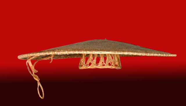 Loại hình tròn được tạo dáng giống với cái khiên, có đường kính từ 70 - 80 cm. Chính giữa có một khuôn tròn để tròng đầu khi đội như nón quai thao của người Kinh. Toàn bộ chiếc nón được đan, kết rất tỉ mỉ và khá chắc chắn, từ bộ khung xương đến phần quai đều toát lên vẻ thẩm mĩ cao.