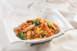 Nếu bạn là fan của các món trộn thì đây chính là lựa chọn nhất định phải thử! Món gỏi gồm đu đủ xanh, xoài sống, dưa leo trộn đều, giòn tan thấm vị chua chua, ngọt ngọt; thịt gà khìa mềm dai thoang thoảng hương lá chanh, tất cả tạo thành một tổng thể hài hoà vừa tươi mát, vừa đậm đà khó cưỡng!