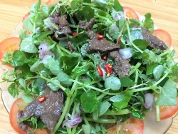 “Tút” dáng, giữ eo với rau càng cua trộn thịt bò