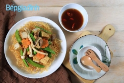 Món chay: Mì xào giòn chay kèm rau củ
