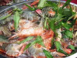 Bình dị với món tôm đất luộc rau răm