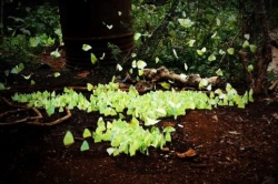 Cứ vào đầu tháng tư hằng năm khi hoa cà phê bắt đầu tàn, chuyển sang kết trái cũng là lúc đàn sâu nhộng muồng thoát xác thành bướm bay vờn khắp vườn cây rồi bay ra ngoài đường.