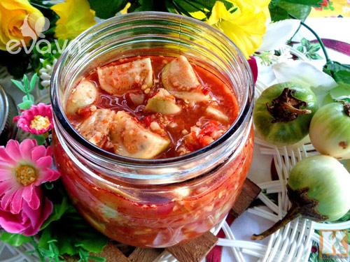 Muốn cà không bị thâm và để thêm được vài ngày nữa thì phần hỗn hợp tương ớt phải đổ ngập cà thì cà sẽ không bị thâm.