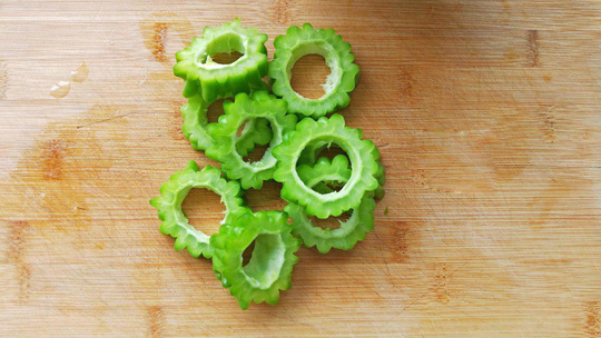 Mướp đắng rửa sạch, cắt khoanh, bỏ ruột.