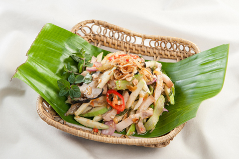 – Nước trộn gỏi: Giã nhỏ tỏi ớt gừng, sau đó cho hỗn hợp nước mắm đường với 3M Giấm gạo lên men của Ajinomoto, 1/2m bột ngọt AJI-NO-MOTO®, 1M tương ớt vào, khuấy tan.