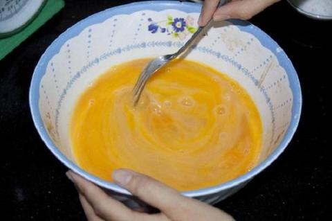 Đập trứng vào bát, cho chút muối vào đánh đều lên.