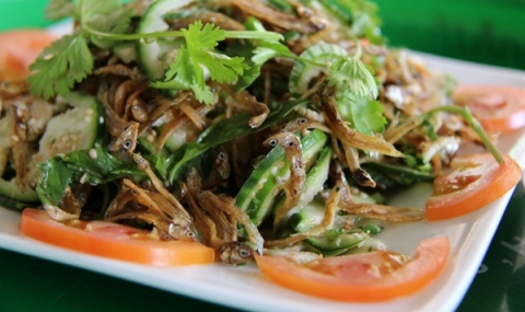 Tất nhiên, cá cơm là loài hải sản, chẳng có ở núi rừng Tây Nguyên. Nhưng ngộ ở chỗ, mang khô cá cơm ở vùng biển trộn với gỏi cà đắng ở núi rừng lại trở thành món ăn ngon đáo để.