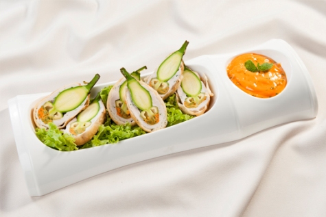 – Xếp nụ bí ra dĩa. Ăn kèm với xốt và salad.