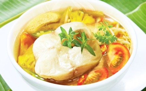 – Sau 5 bước thực hiện là bạn đã có bát canh cá sẽ thật hấp dẫn với màu trắng của cá kèm màu đỏ của ớt và cà chua, màu xanh của rau mùi tàu và thì là, màu vàng tươi của dứa, thơm ngon.