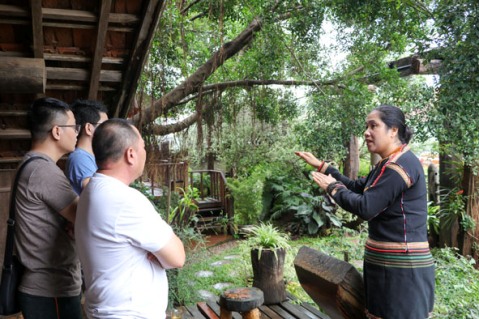 Du khách tìm hiểu về văn hóa đồng bào Êđê tại buôn Akô Dhông (TP. Buôn Ma Thuột)