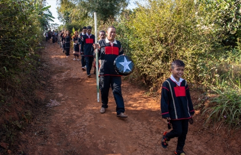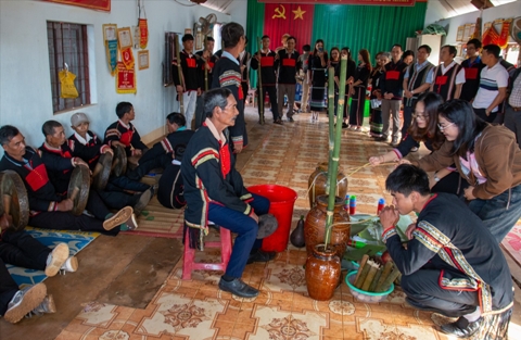 Mọi người cùng nhau về Nhà cộng đồng tiếp tục thực hiện các nghi thức và thưởng thức rượu cần