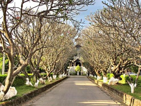 Đây là điểm đến không thể bỏ qua cho những bạn yêu thích khám phá văn hóa, lịch sử khi đến Tây Nguyên. Bên cạnh đó, ấn tượng khó phai với những người lần đầu đặt chân đến đây là hàng hoa sứ lâu năm, tỏa hương dịu nhẹ ngay lối vào. Để trừ sâu bệnh, những gốc sứ được quét vôi trắng. Khi chưa rụng lá, cây rợp bóng mát che kín cả con đường, còn đến mùa hoa nở, đoạn đường này trở nên rực rỡ dưới sắc hồng đậm của hoa sứ, nổi bật trên nền trời xanh trong vắt.